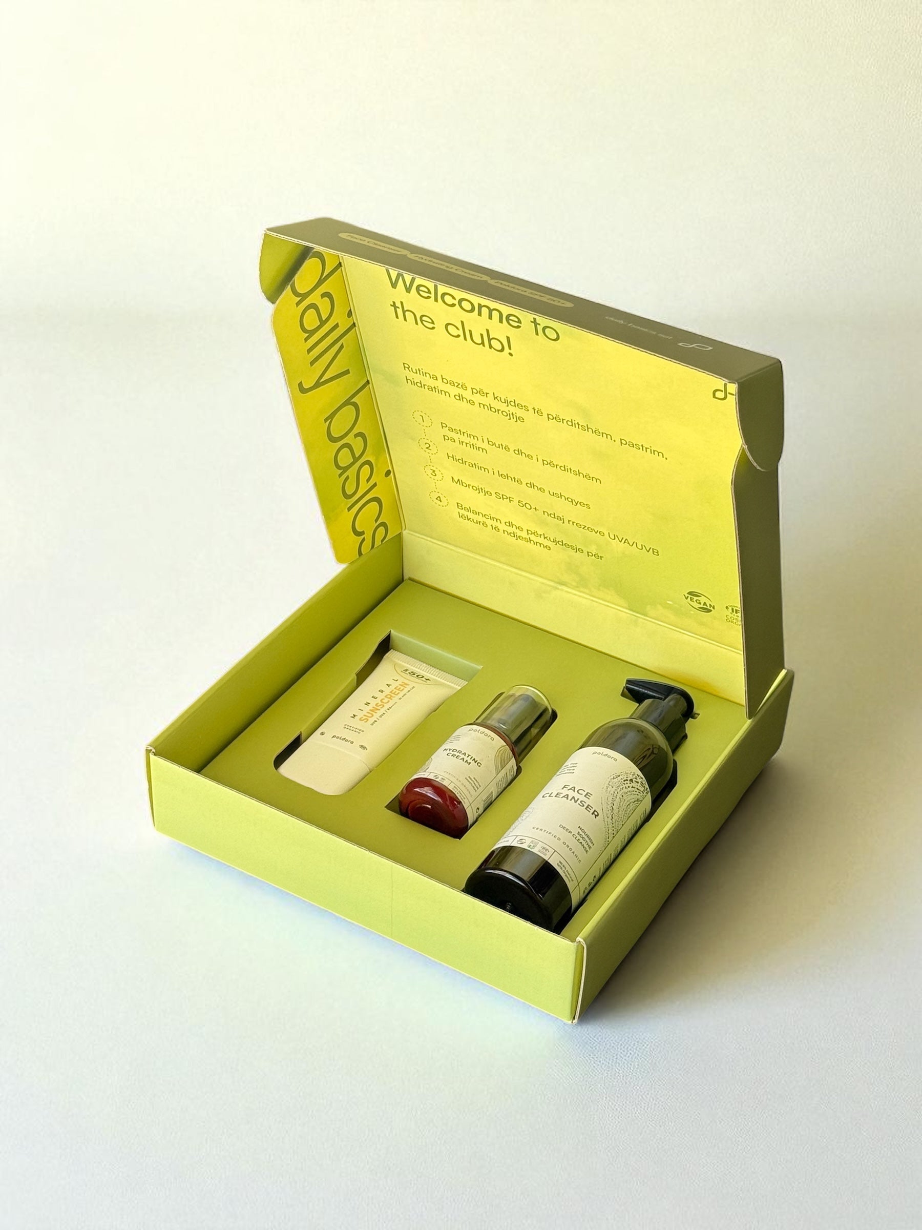 âąNjĂ« set i formuluar nga produktet bazike dhe mĂ« tĂ« nevojshme pĂ«r rutinĂ«n e pĂ«rditshme i cili pĂ«rmban;